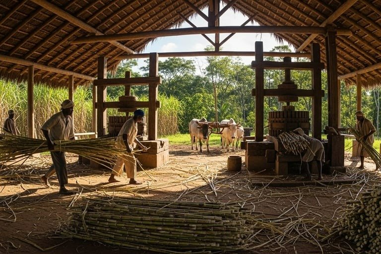 1. Um Feito de Empreendedorismo e Engenharia, Não Apenas de Opressão: A esquerda convenientemente ignora a genialidade, a coragem e o espírito empreendedor necessários para erguer essa indústria do zero. Em uma terra selvagem, sem qualquer infraestrutura, ameaçada por tribos hostis e doenças tropicais, os colonizadores tiveram que dominar o solo, aclimatar a cana, construir máquinas complexas e criar do nada uma cadeia logística para transportar e exportar o produto para a Europa. Isso foi um feito monumental de empreendedorismo de risco.
