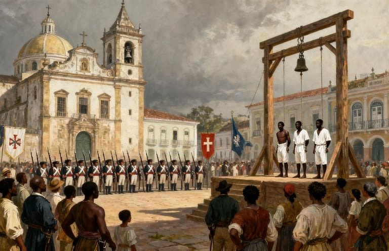 • A Sentença Desigual: A repressão da Coroa foi um exemplo claro de justiça seletiva. Os membros mais ricos e influentes da conspiração, como Cipriano Barata, receberam penas mais brandas, como prisão ou exílio. Já os líderes populares e negros – João de Deus, Manuel Faustino, Lucas Dantas e Luís Gonzaga das Virgens – foram condenados à pena máxima. Eles foram enforcados na Praça da Piedade, e seus corpos foram esquartejados e expostos em locais públicos para servir de exemplo.